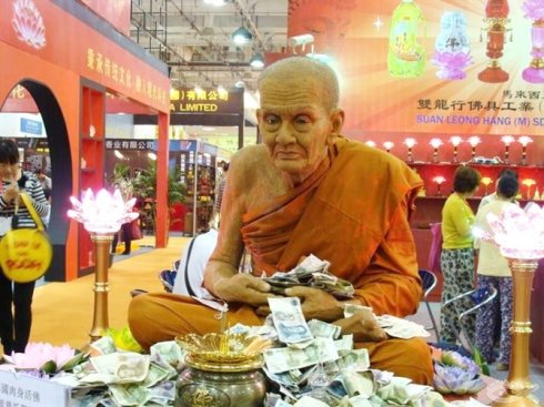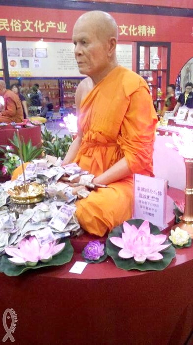 这两尊泰国的肉身阿罗汉,曾经被请到中国厦门展出。圣僧被请到了中国,中国人去参观,,有一供养,就有一份功德,也就与尊者结上佛缘。