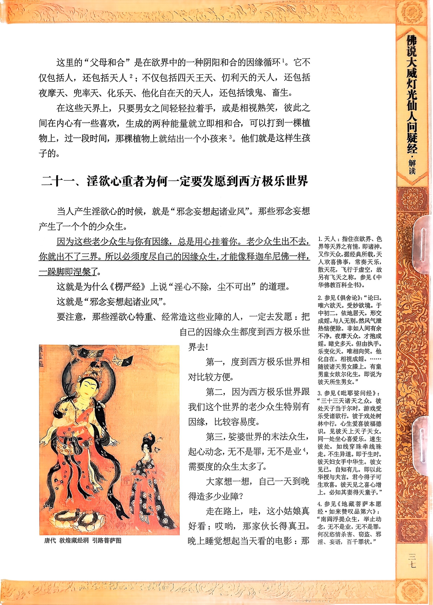 佛告年少:“此是菩提萨埵 自身光明,现作日月 示于众生,为之说法 安乐利益 一切天人,人中修行 得此神通。”